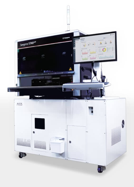 씨젠은 분자진단의 효율성을 극대화할 수 있는 자동화 진단 장비를 개발 및 공급하고 있습니다. 대표적인 장비로는 AIOS와 같은 완전 자동화 플랫폼이 있으며, 시약 준비부터 결과 분석까지 모든 공정을 자동화하여 검사 시간을 단축하고 정확성을 높이는 것으로 알려져 있습니다.