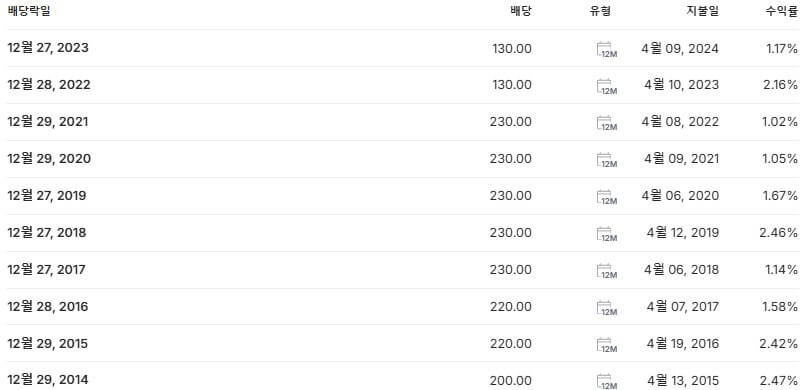 위의 표를 통해 최근 지급된 테크윙 배당금 배당 정보를 확인하시기 바랍니다.